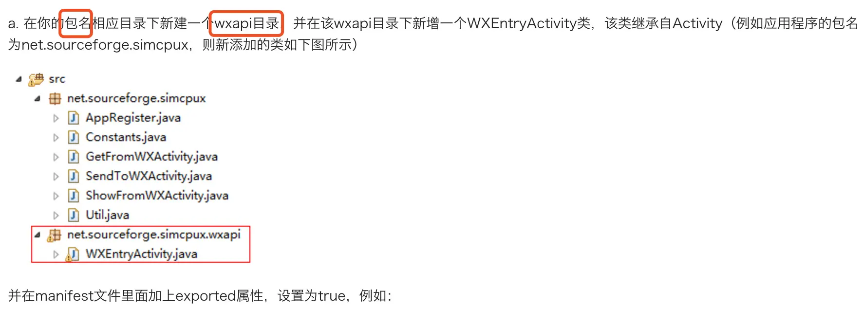 微信登录官方文档有两个是要自己创建的类:WXEntryActivity类和WXPayEntryActivity类