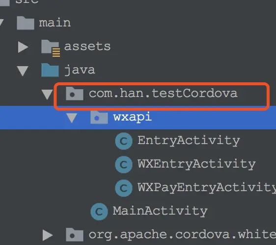 红框中已经说明必须放在包名下面,而插件在项目的目录中自己生成了一个src/包名/wxapi的目录