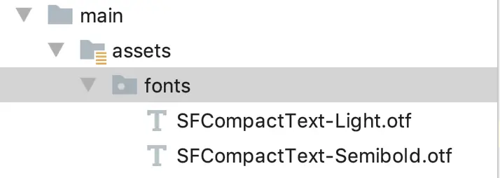 在main文件夹下,新建assets/fonts文件,添加.otf文件