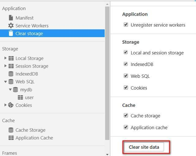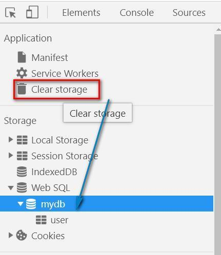 如果想清除掉Web SQL里的数据库表,在Chrome开发者工具里点击Clear storage: