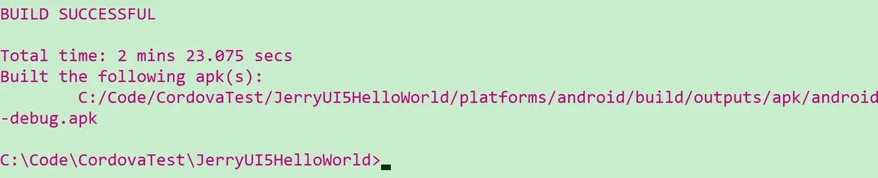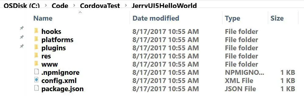 cordova create JerryUI5HelloWorld