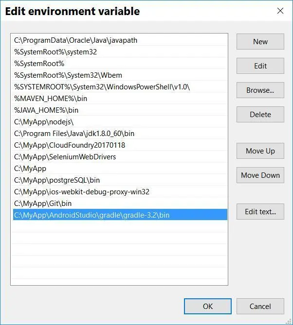 我没有选择安装庞大的Android Studio,而是下载了gradle的二进制版本,将其加入到Path环境变量中即可。