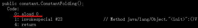 使用命令行javap -c constant.ConstantFolding查看.class文件反编译出来的字节码: