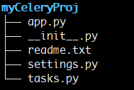其中 init.py是空文件,目的是告诉 Python myCeleryProj 是一个可导入的包.