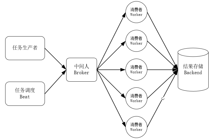 任务生产者 :调用Celery提供的API,函数,装饰器而产生任务并交给任务队列的都是任务生产者。