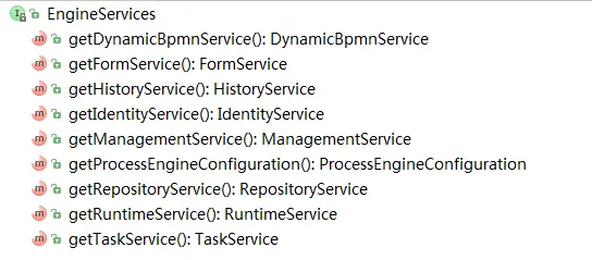 jdbc:h2:mem:activiti)。此外,还有多种创建流程引擎实例的方法: - 得到 ProcessEngine 实例之后,就可以获取 Activiti 定义的各个 Service 接口啦: