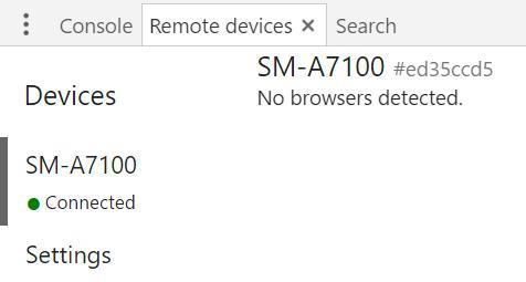 这里我就能看到我正在运行Cordova应用的三星手机,SM A7100,状态处于已连接状态(Connected)。