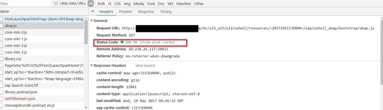 这总情况能在Chrome开发者工具的Network标签页里看到from disk cache的提示: