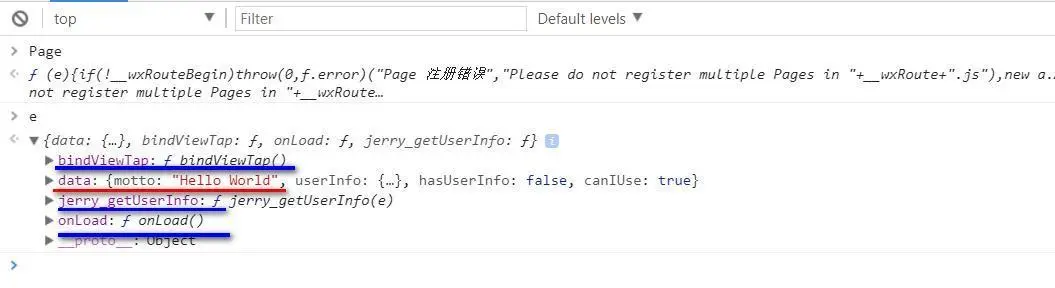 我们同样可以在微信小程序调试器里输入Page然后回车查看这个构造函数的源代码,