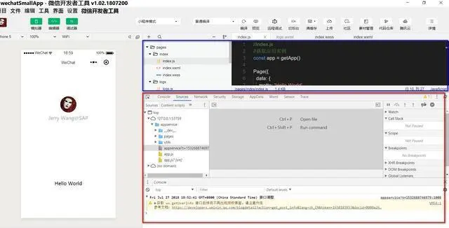 这个教程的前两篇文章,介绍了如何用下图所示的微信开发者工具自动生成一个Hello World的微信小程序,并讲解了这个自动生成的微信小程序的视图开发原理。