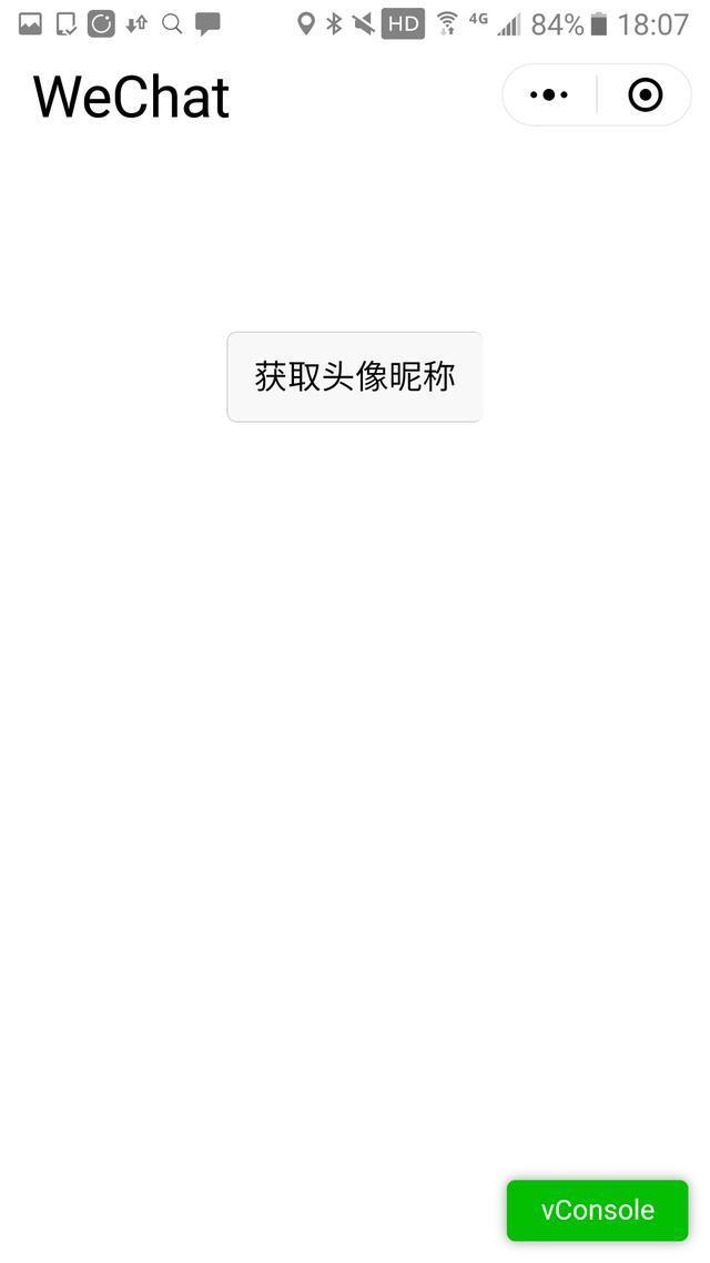 在微信小程序上显示一个按钮:“获取头像昵称”。