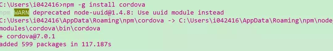 命令行npm -g install cordova安装Cordova:
