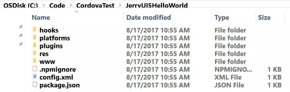 这个命令行已经帮助我们自动生成了很多稍后打包成混合应用所必需的资源文件。
