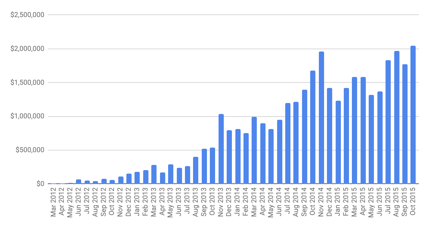 But now, I realize: It doesn’t matter whose “fault” it is, we hit a peak in November 2014 and stalled. A lot of creators absolutely loved us, but there weren’t enough of them who needed our specific product offering. Product-market fit is great, but we needed to find a new, larger fit to justify raising more money (and then do it again and again, until acquisition or IPO).