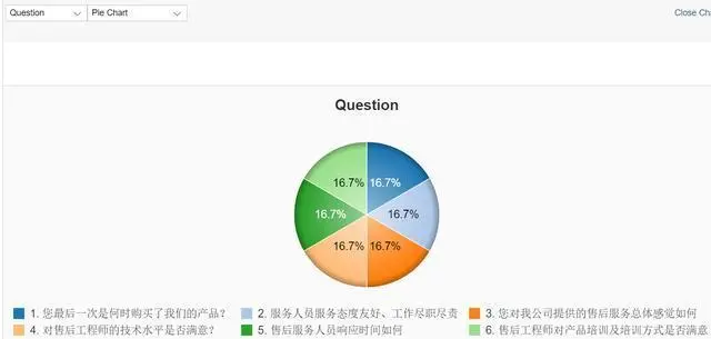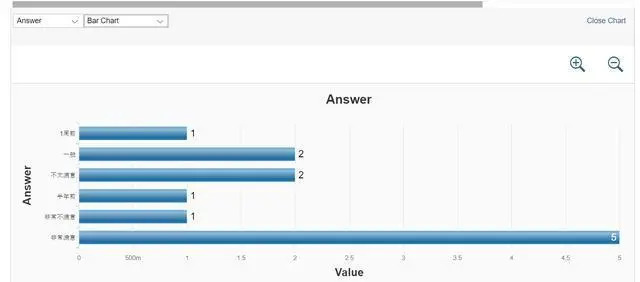 如果上述勾打上之后,可以通过点击CRM UI上的Evaluation按钮,以图表形式查看Survey结果: