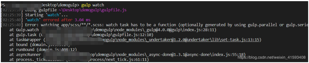这个是由于require引入的包的版本问题导致的。在不同的版本里,接口参数发生了变化。在gulp4.0之后已经只能接受watch第二个参数必须为函数。详情请看官网