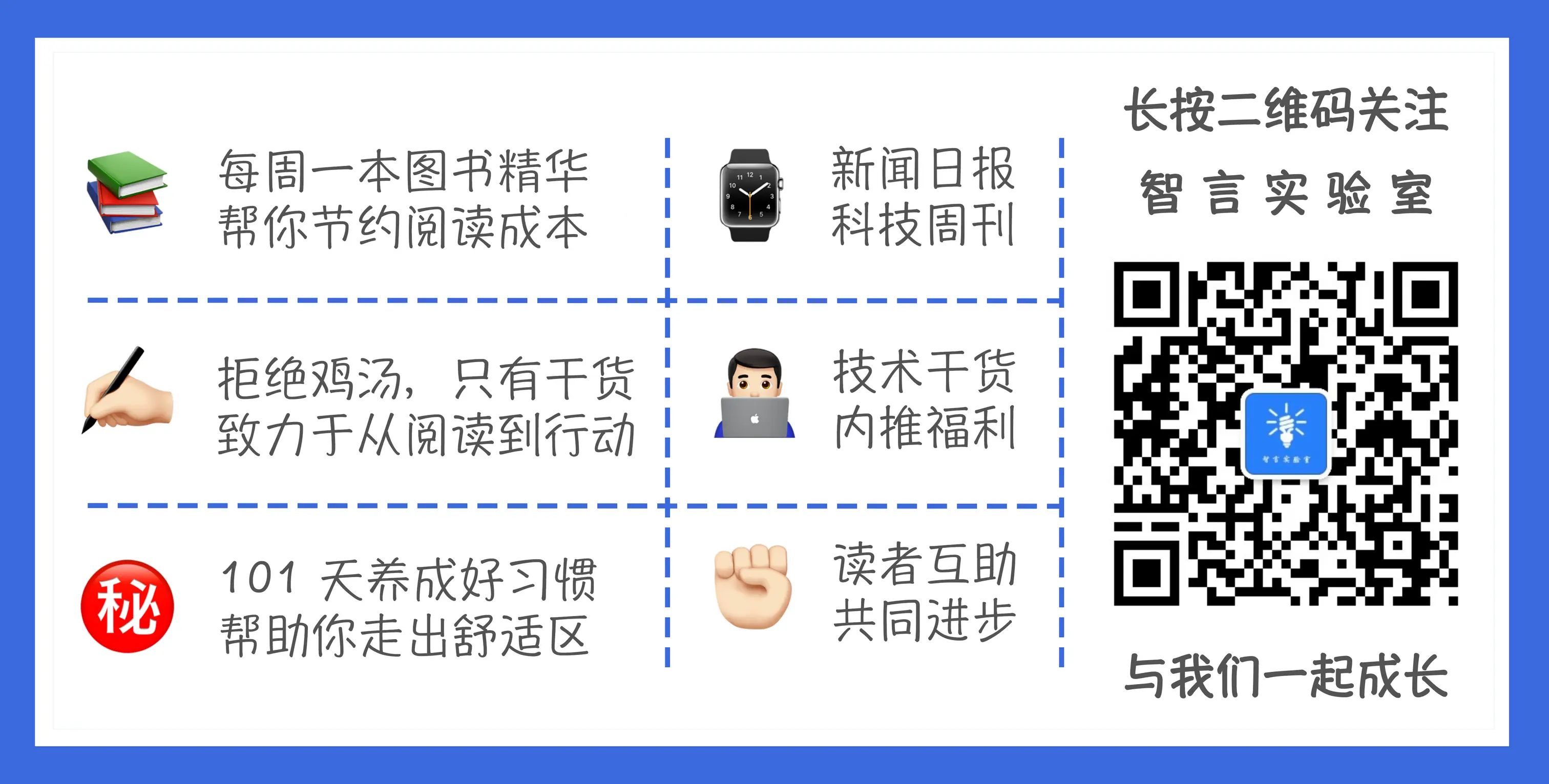 本文首发于微信公众号「智言实验室」,欢迎微信搜索并关注,订阅科技日报、科技周刊、图书导读和个人提升等更多精彩内容。