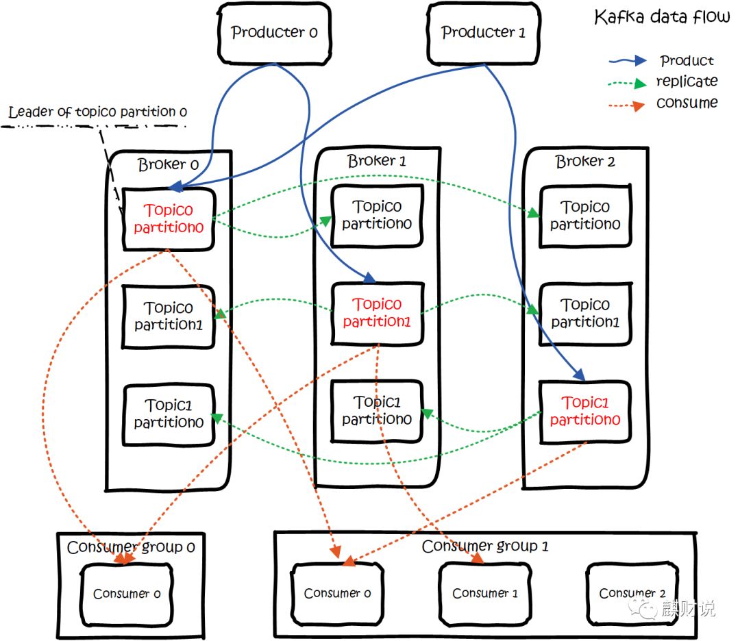 parition内是保证消息有序。 每新写一条消息,kafka就是在对应的文件 append写,所以性能非常高。 kafka的总体数据流是这样的: