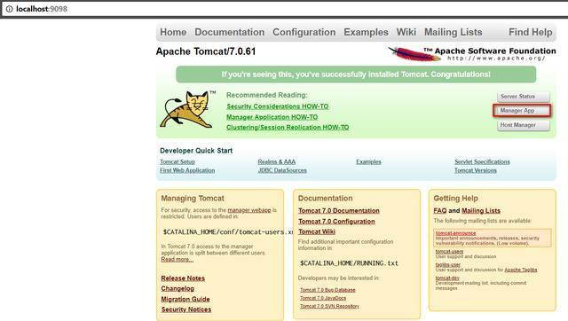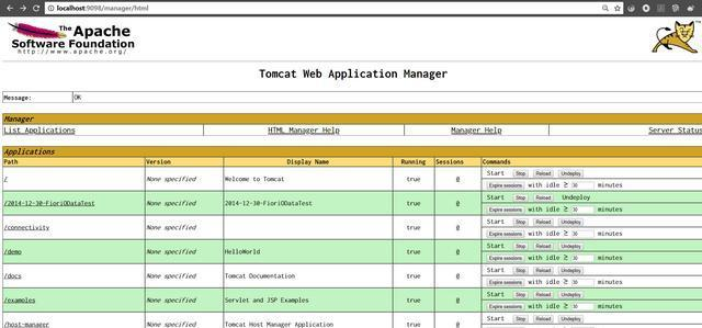 再点Manager App,即可进入Tomcat自带的Manager这个应用,此处可以单独部署/卸载每一个应用。可以看到在Manager应用里提供的功能是很有限的。
