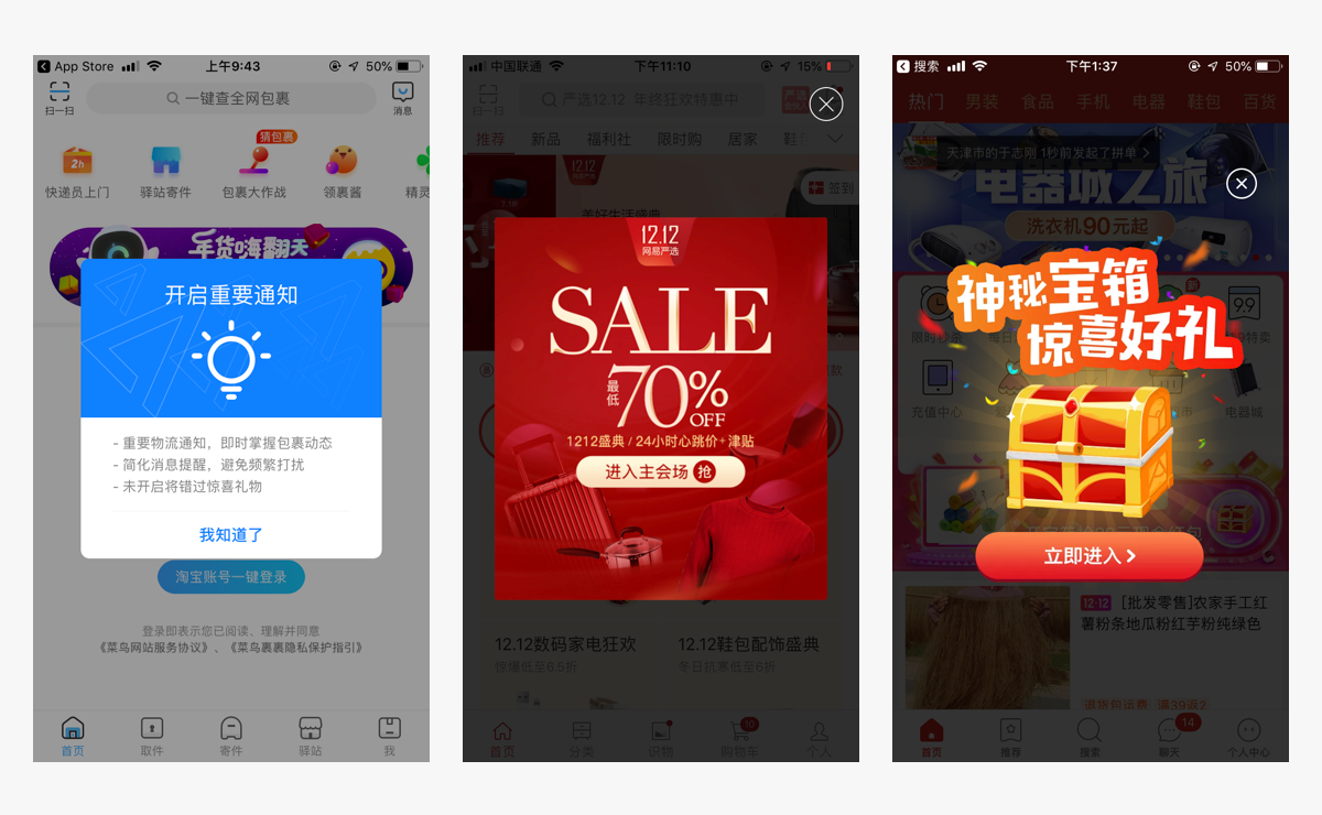 1、都是小尺寸弹窗,几秒钟后自动消失。