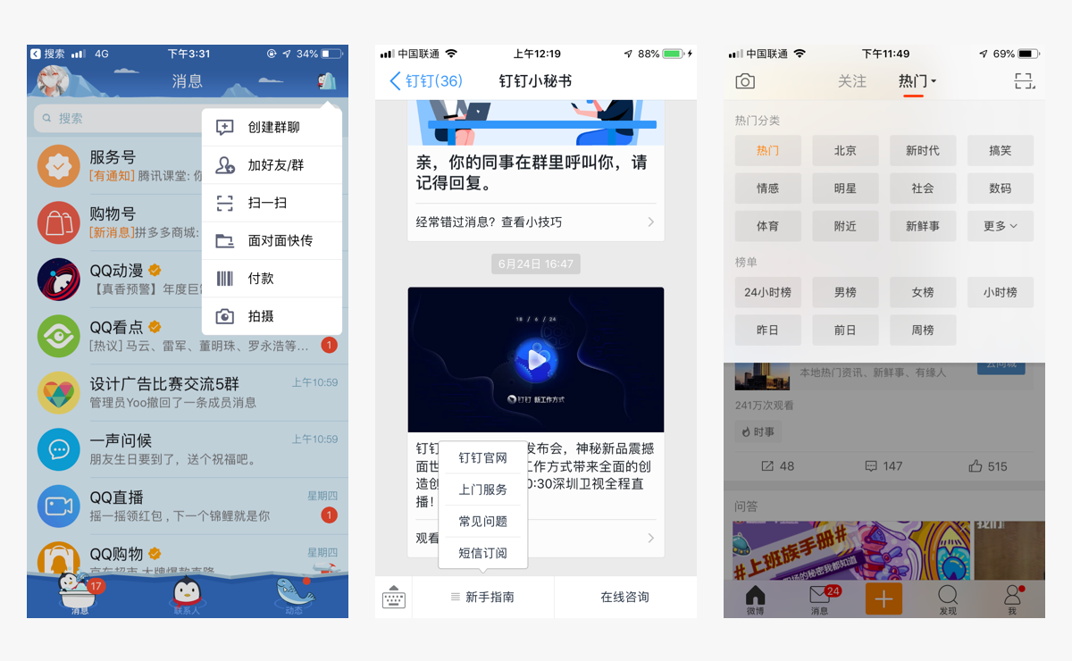 Dialog适用于少量选项的判断操作;动作栏和浮层适用于多个选项的功能操作;浮层具有一定的指向性。