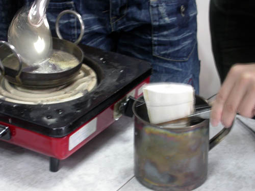 小心的把锡液倒入模穴里,这就铸造大功告成了,简单吧?
