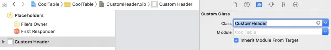 在新的XIB文件中,您将找到一个视图。 在Identity检查器中,将其类从UIView更改为CustomHeader,这是您刚刚创建的类。