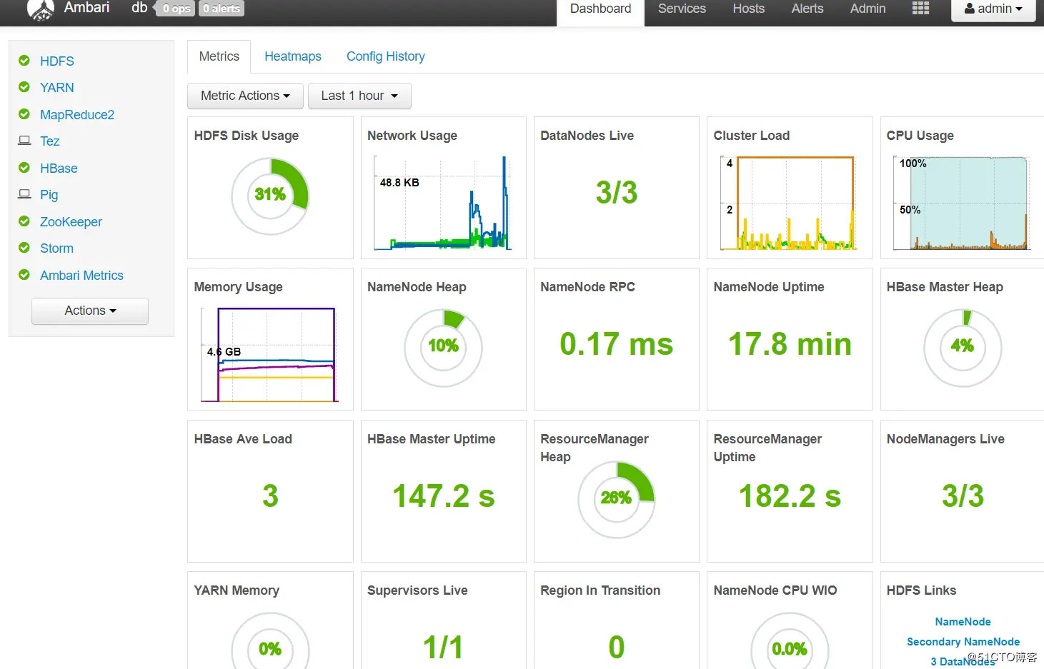 Apache Ambari是一个基于Web的支持Apache Hadoop集群的供应、管理和监控的开源工具,Ambari已支持大多数Hadoop组件,包括HDFS、MapReduce、Hive、Pig、 Hbase、Zookeeper、Sqoop和Hcatalog等。提供Web UI进行可视化的集群管理,简化了大数据平台的安装、使用难度。