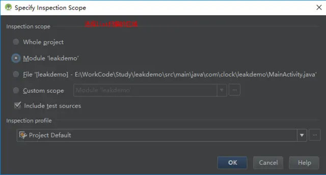 Lint 是 Android Studio 自带的工具,使用姿势很简单 Analyze -> Inspect Code 然后选择想要扫面的区域即可
