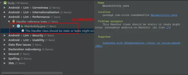 对可能引起泄漏的编码,Lint 都会进行温馨提示: