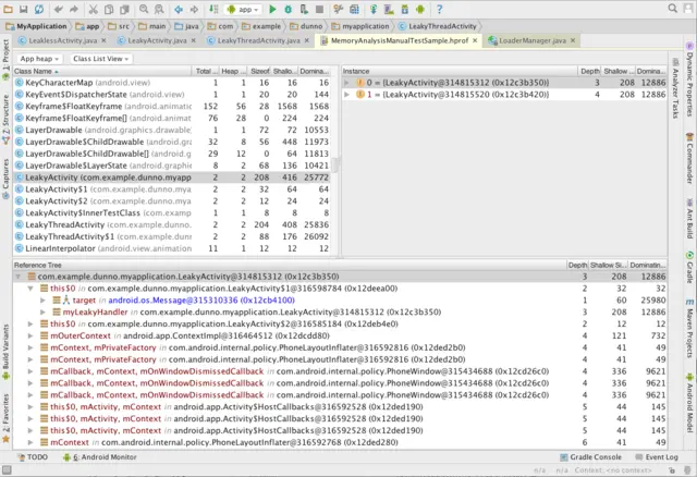 Square 公司出品的内存分析工具,官方地址如下:github.com/square/leak… LeakCanary 需要在项目代码中集成,不过代码也非常简单,如下的官方示例: