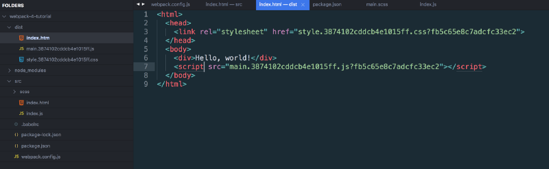 现在,当我编辑 main.scss 时,会生成 style.css 的新哈希。当我编辑 css 时只有 css 的哈希更改,当我编辑 ./src/script.js 时,只有script.js 的哈希更改!