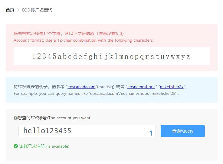 EOS官方为了防止大家恶意抢注,第一期对可注册账号名设定了若干规则
