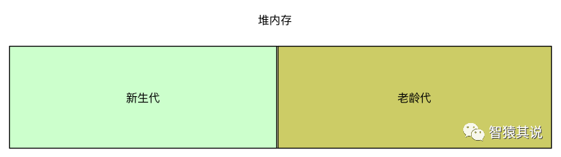 对象的内存分配主要就是在堆上进行分配。所以我们先来看一下堆内部布局,堆可以划分为两大块内存:新生代和老龄代,如下图所示: