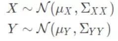 首先,我们得到测试点 X 和训练点 Y 之间的联合分布 P(X,Y),这是一个维数为∣Y∣+∣X∣的多元高斯分布。下图中可以看到,我们把训练点和测试点拼接到一起,计算对应的协方差矩阵。