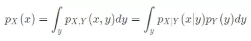 这个公式的意思是,如果我们只对 X=x 的概率感兴趣,我们要考虑 Y 所有可能的值,它们齐心协力才能得到最终的结果。