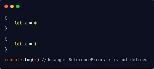 这里外部的console.log(x)拿不到前面2个块级作用域声明的let: