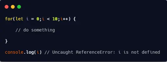 在日常开发中多存在于使用if/for关键字结合let/const创建的块级作用域,值得注意的是使用let/const关键字声明变量的for循环和var声明的有些不同