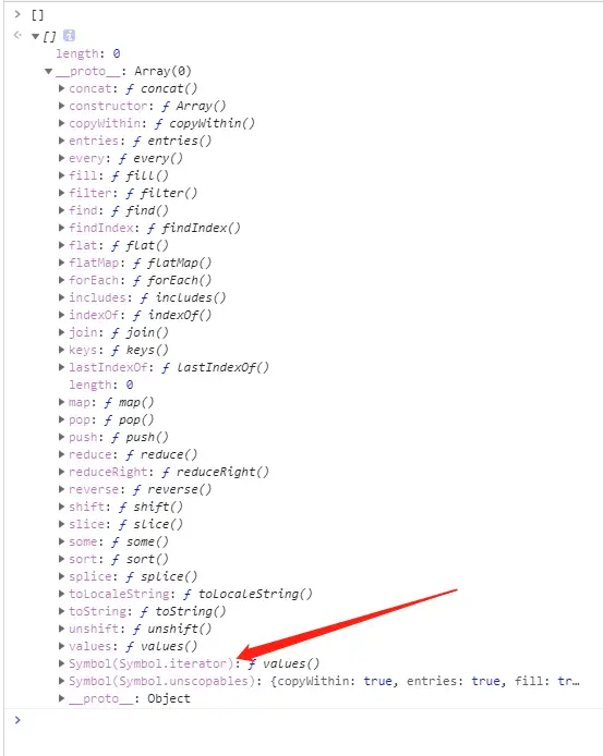 数组中的Symbol.iterator方法(iterator接口)默认部署在数组原型上: