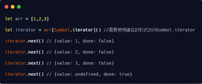 iterator迭代器是一个对象,它具有一个next方法所以可以这么调用