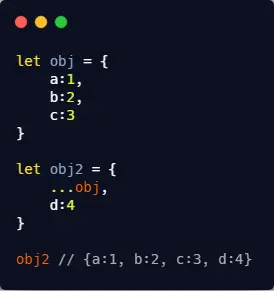 这个是ES9的语法,ES9中支持在对象中使用扩展运算符,之前说过数组的扩展运算符原理是消耗所有迭代器,但对象中并没有迭代器,我个人认为可能是实现原理不同,但是仍可以理解为将键值对从对象中拆开,它可以放到另外一个普通对象中