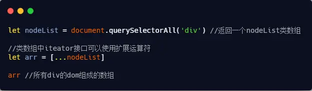 使用扩展运算符可以快速的将类数组转为一个真正的数组