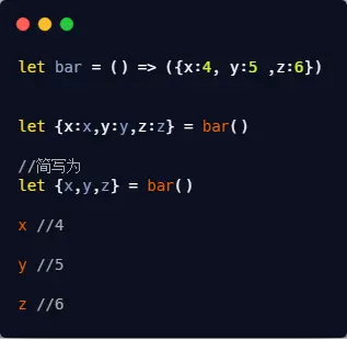 解构赋值可以直接使用对象的某个属性,而不需要通过属性访问的形式使用,对象解构原理个人认为是通过寻找相同的属性名,然后原对象的这个属性名的值赋值给新对象对应的属性