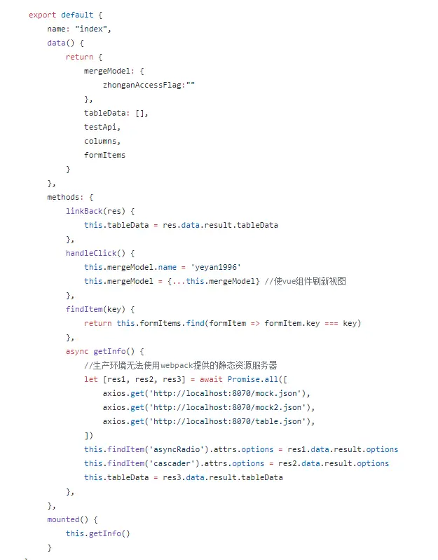 这个是我最常用的小技巧,使用Object.assign可以将你目前组件中的data对象和组件默认初始化状态的data对象中的数据合并,这样可以达到初始化data对象的效果