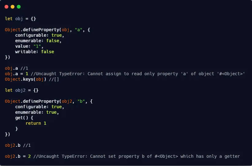 defineProperty可以拦截对这个对象的Object.defineProerty操作