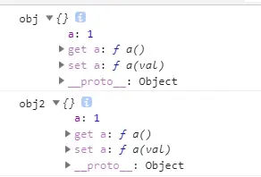 - obj上a属性的setter函数替代默认的赋值行为,导致obj2的a属性不会被复制过来