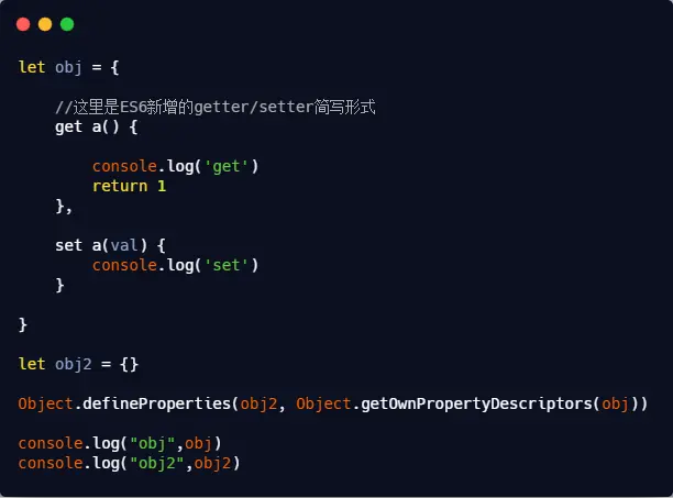 可以看到这里成功的复制了obj对象中a属性的getter/setter