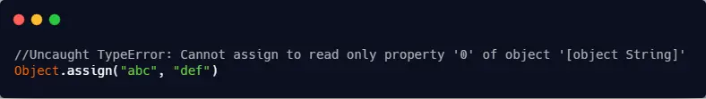 字符串abc会转为基本包装类型,然后将字符串def合并给这个基本包装类型的时候会将字符串def展开,分别将字符串def赋值给基本包装类型abc的0,1,2属性,随后就会在赋值的时候报错(非严格模式下会只会静默处理,ES6的Object.assign默认开启了严格模式)