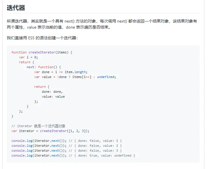 借用冴羽博客中ES5实现的迭代器可以更加深刻的理解迭代器是如何生成和消耗的