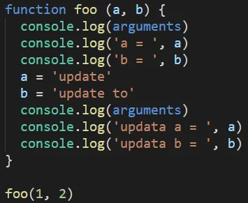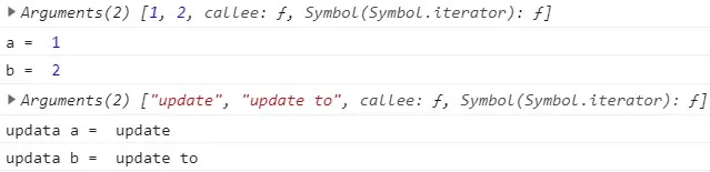 很显然的就能看出形参的值在函数执行体中被改变了,arguments的值也会被改变。这样在函数形参值改变之后获取arguments的值是不准确的。因此在es6中不建议使用arguments来获取接收不定数目的参数。